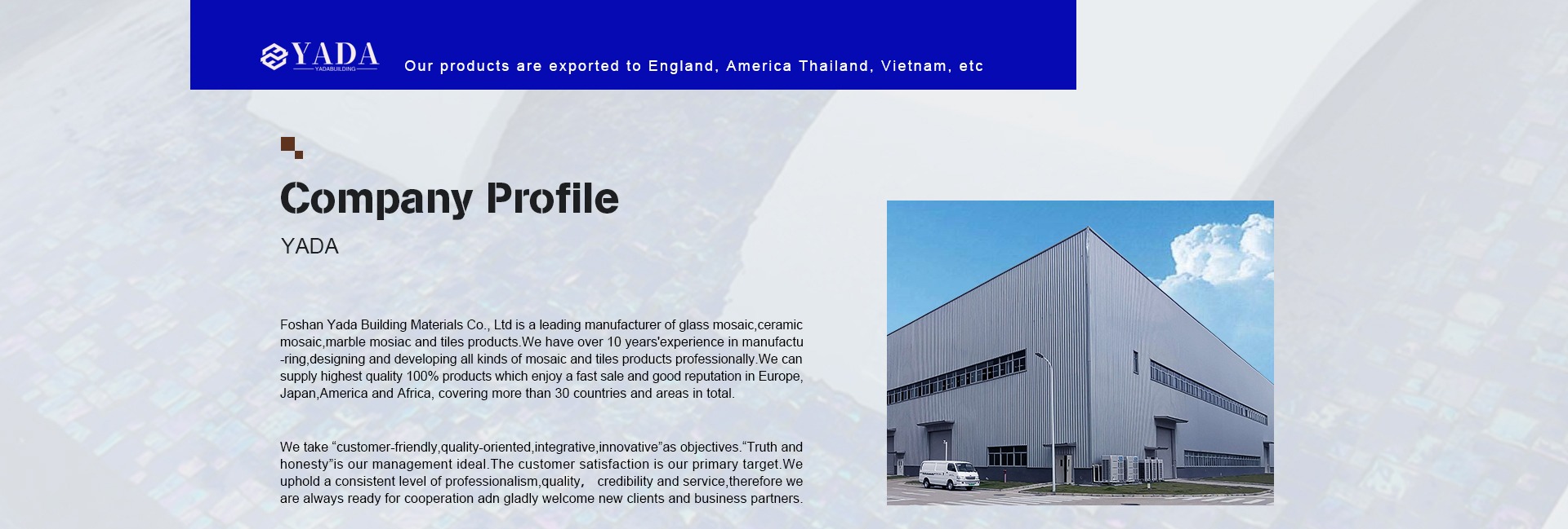Produk utama: Mosaik kaca, mosaik keramik, mosaik marmer, ubin, ubin keramik